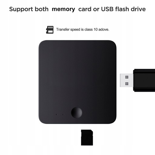 Nośniki pamięci: karta pamięci i pamięć flash USB, obsługuje formaty FAT32 i NTFS, nie obsługuje formatu ExFAT.