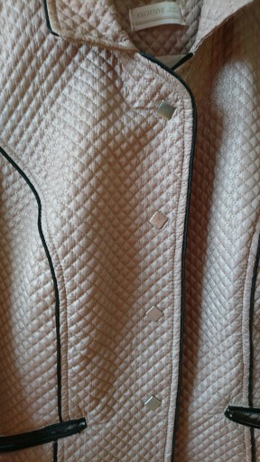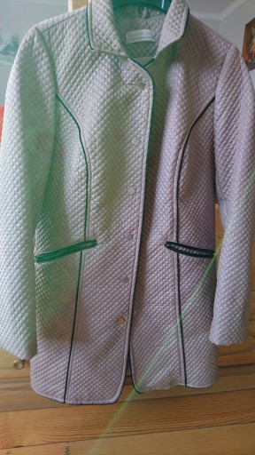 Beżowy długi płaszczyk. Szerokość pod pachami 46 cm, w pasie 42, całkowita długość 80 cm.