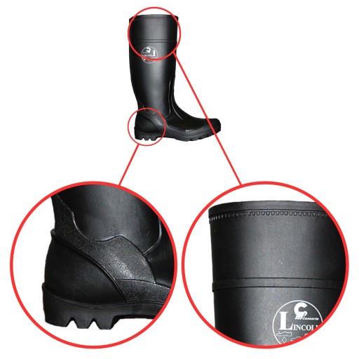 Wysokie gumowce wodoodporne wykonane z PCV, które zapewnia trwałość, wygodę użytkowania i są łatwe w utrzymaniu czystości. Kalosze posiadają szerokie podbicie i cholewkę, co ułatwia wkładanie i wyciąganie stopy. Idealne do uniwersalnego zastosowania - sprawdzą się zarówno w mieście, jak i na wsi.