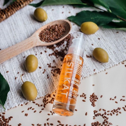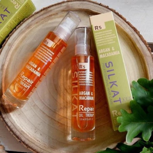 - olejek arganowy – nadający włosom jedwabistą gładkość oraz znakomitą elastyczność. Olejek ten pochodzi z nasion arganii żelaznej występującej na terenach południowego Maroka, w szczególności na równinie Sousse. Przez ekspertów piękna jest nazywany „płynnym złotem” i posiada on właściwości odbudowy suchych i zniszczonych włosów. Nadaje blask i miękkość zarówno włosom prostym, jak i kręconym, a dzięki wewnętrznemu nawilżeniu włosy stają się jedwabiście gładkie i elastyczne.