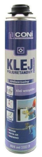Jednoskładnikowy, pistoletowy klej poliuretanowy CONI jest profesjonalnym, uniwersalnym produktem, przeznaczonym do klejenia różnorodnych materiałów: płyt gipsowo-kartonowych, płyt i paneli izolacyjnych, dekoracyjnych, ceramicznych podłoży budowlanych i wszelkich typowych podłoży budowlanych.