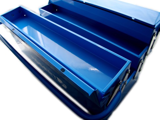 Metalowa skrzynka na narzędzia i drobne elementy. Sztywna konstrukcja gwarantuje trwałość i niezawodność produktu