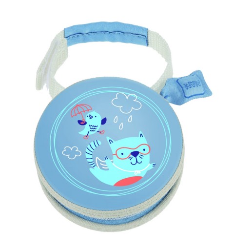 Najlepszym sposobem na noszenie ze sobą smoczków jest kapsuła – akcesorium, które może pomieścić dwa smoczki lub małe przedmioty. Mocuje się szybko i łatwo dzięki zapięciu na rzep i można go przyczepić np. do wózka, torby, paska czy łóżeczka.