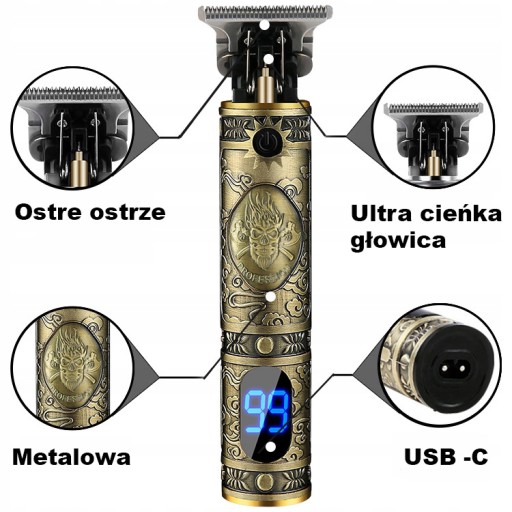 Машинка для стрижки волос Vintage T9 Триммер для бороды Череп
