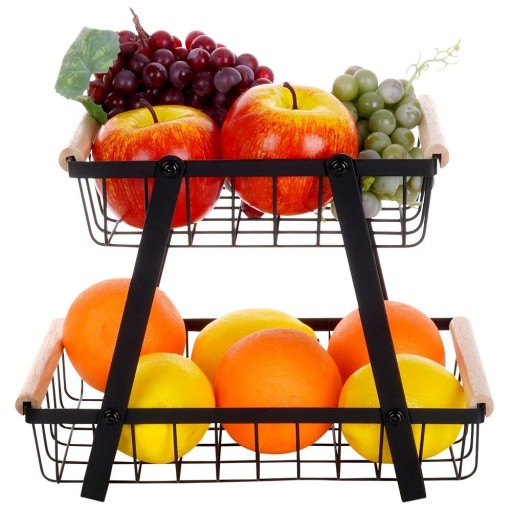 - DO PRZECHOWYWANIA - Dwupoziomowy koszyk do przechowywania warzyw i owoców. Koszyk o wymiarach całkowitych: 28 x 17,5 x 21 cm. Doskonale sprawdzi się postawiony na blacie lub szafce. Składa się z dwóch koszyków w różnych rozmiarach. Koszyk dolny ma wymiary: 28 x 17 x 6 cm, a koszyk górny: 21,5 x 17 x 6 cm.