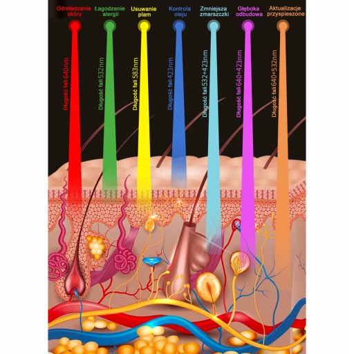 ✅Różne długości fal docierają do różnych warstw skóry, aby poprawić pierwotną przyczynę różnych problemów skórnych