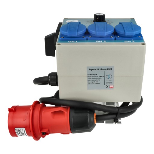 Konstrukcja regulatora pozwala na podłączenie jednej, dwóch, lub trzech wtyczek do trzech gniazdek tablicowych z bolcem, eliminując potrzebę korzystania z wielu urządzeń. Jego wyjątkowa wydajność zostaje potwierdzona zdolnością do pracy z pełnym obciążeniem 3x4000 W przez dłuższy czas, bez ryzyka przegrzewania. Takie osiągi świadczą o najwyższej jakości wykonania i niezawodności regulatora, nawet w najbardziej wymagających warunkach.
