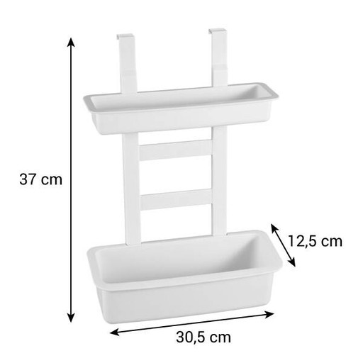 Uchwyt należy zawiesić po wewnętrznej lub zewnętrznej stronie drzwiczek w szafkach kuchennych, położenie pojemników w części wiszącej można ustawić według własnych potrzeb.