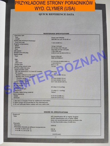 - szczegółowy i wyczerpujący poradnik serwisowy, pomocny zarówno przy prostych czynnościach obsługowych, jak i skomplikowanych naprawach (wymiary naprawcze, tolerancje, luzy, momenty dokręcania połączeń gwintowych) - zawiera dokładne opisy „krok po kroku” pomocne tak warsztatom naprawczym, jak i indywidualnym użytkownikom - bogato ilustrowana setkami zdjęć i rysunkami złożeniowymi,