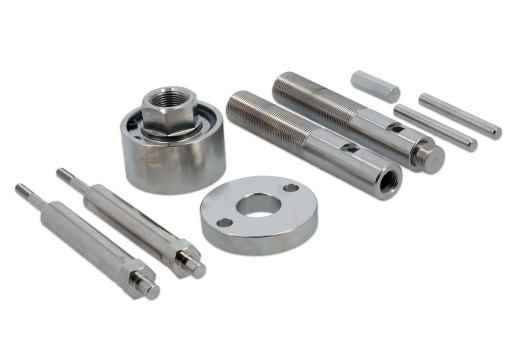 Zestaw zawiera narzędzia do wyciągania zapieczonych wtryskiwaczy poprzez wykręcanie za pomocą śrub wyciągowych: