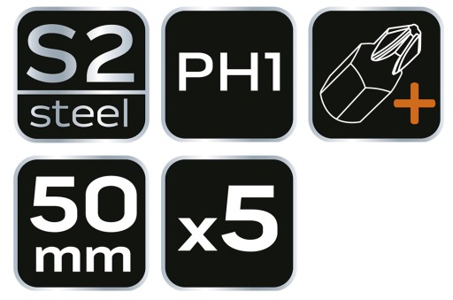 Bity udarowe S2, 50 mm, PH1 - 5 szt.