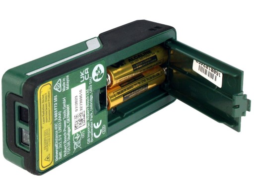 Dalmierz laserowy UniversalDistance 40C zasilany jest trzema bateriami R3 1,5V (AAA), które pozwalają wykonać ponad 10.000 pojedynczych pomiarów lub ponad 2,5 godziny pomiaru ciągłego.