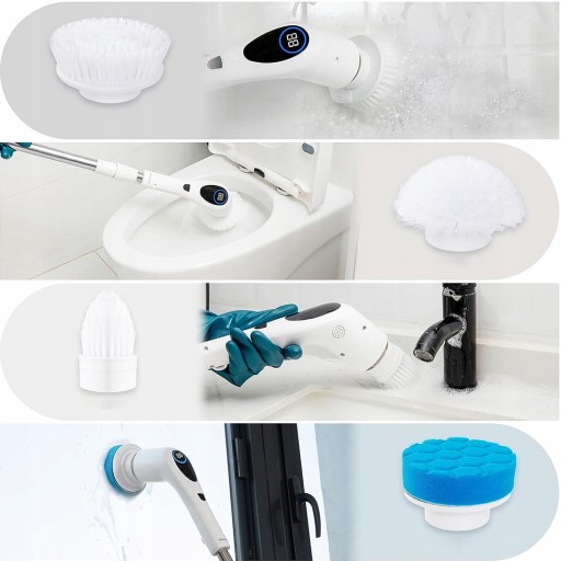 - 【Wyposażony w 9 główek szczotek, aby spełnić różne potrzeby w zakresie czyszczenia】: Użyj spiczastej szczotki do czyszczenia szczelin i krawędzi w wannie lub prysznicu, użyj dużej płaskiej szczotki do czyszczenia podłogi w łazience, użyj małej płaskiej szczotki do czyszczenia zlewu , a zakrzywioną szczotką wyczyść zlew i krany, nakładki do szorowania kuchenki, szczotki gąbkowe do czyszczenia okien, podłóg drewnianych, a szczoteczką i kulką do czyszczenia usuniesz uporczywe plamy w całym domu.