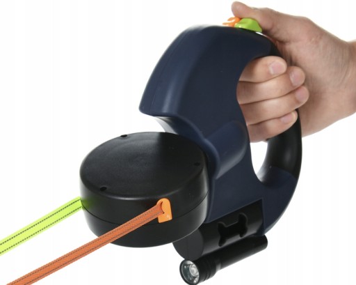 3. Przycisk do przodu, każda lina jest sterowana niezależnie. Kiedy wyprowadzasz tylko jednego psa, drugą linkę można odłożyć bez wpływu na użytkowanie.