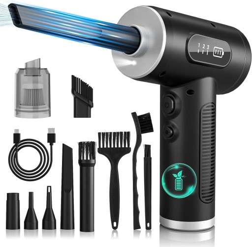 - Może być stosowany do czyszczenia komputerów, klawiatur, aparatów fotograficznych, wentylatorów, samochodów, sof, rolet i sierści zwierząt domowych. Świetnie nadaje się do sprzątania domu, biura i usuwania kurzu samochodowego. Może również nadmuchać koła do pływania, nadmuchiwane łóżka, piłki do jogi, nadmuchiwane domy i łodzie ratunkowe.