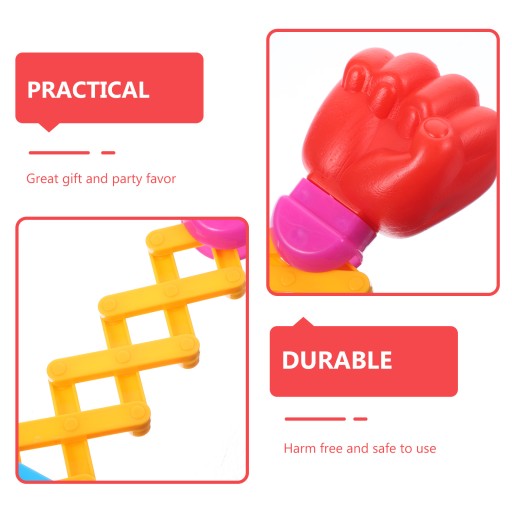 ✅Sprężynowa teleskopowa zabawka z pięściami wykonana jest z tworzywa sztucznego, co zapewnia trwałość i bezpieczeństwo użytkowania.