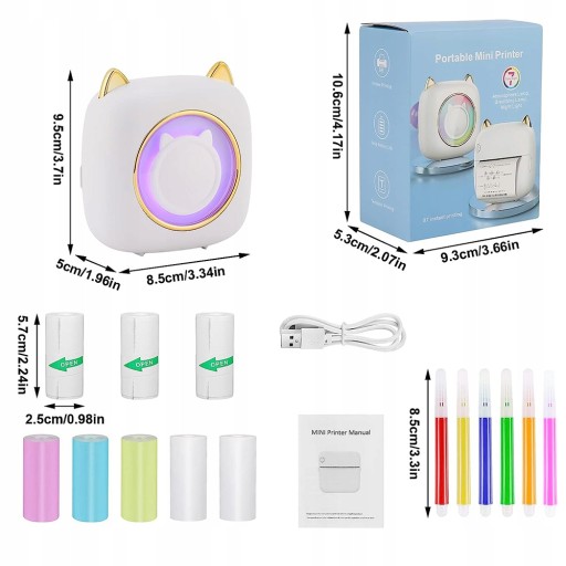 - 📸 Poręczna drukarka przenośna do drukowania materiałów edukacyjnych, notatek, dokumentów, etykiet, przypomnień, ściąg, naklejek itp.