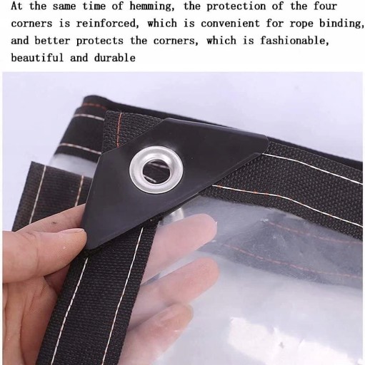 Materiał Premium: Tkanina plandek wykonana jest z wysokiej jakości i wytrzymałej tkaniny polietylenowej. Przezroczysta plandeka jest wyposażona w praktyczne i stabilne oczka wykonane ze stali nierdzewnej, dzięki czemu można ją łatwo zamocować.