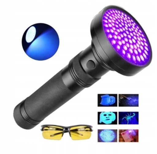 МОЩНЫЙ УФ-ФОНАРИК 100LED УЛЬТРАФИОЛЕТОВЫЙ 395NM + ОЧКИ