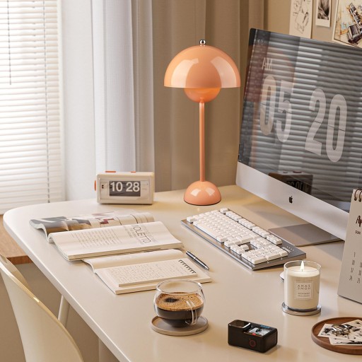 - Przenośna bezprzewodowa lampa biurkowa, elegancka okrągła konstrukcja w kształcie grzybka, może oświetlać 360 stopni.