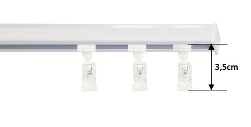 - Podwójna szyna aluminiowa w kolorze białym o długości 420 cm (2x 210cm). Karnisze o długości do 250 cm dostarczamy w całości, a powyżej 250 cm w dwóch równych częściach.