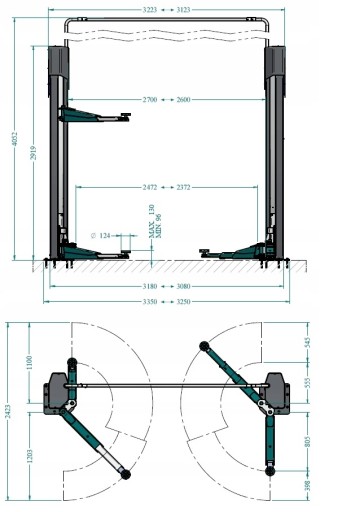 - max. szerokość podnośnika: 3250 - 3350 mm