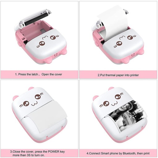 Беспроводной термопринтер Druś мини-принтер кот розовый с 1 рулоном