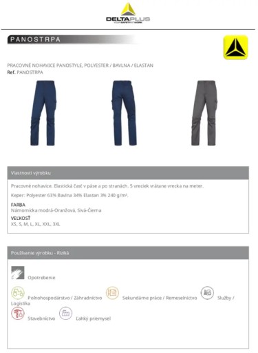 Spodnie robocze panostyle z poliestru, bawełny I elastanu DELTAPLUS [PANOST