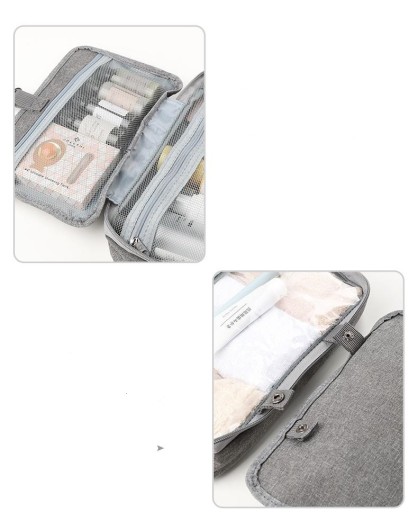 - Dzięki 4 oddzielnym przegródkom może pomieścić pełny zestaw podróżnych przyborów toaletowych i kosmetyków oraz umożliwia zawieszenie. Jest to pierwszy wybór dla torby podróżnej.