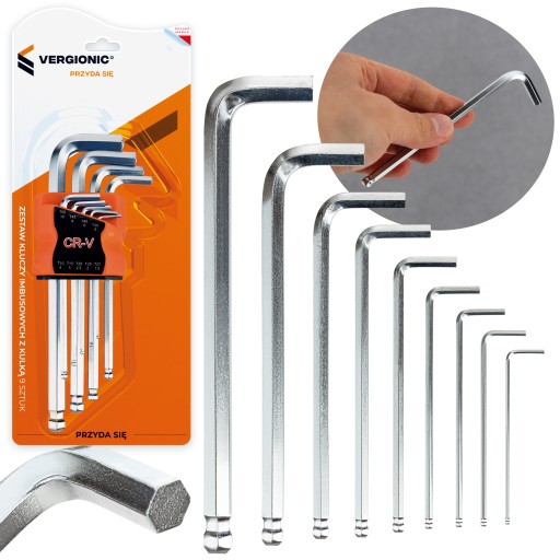 Zestaw KLUCZY IMBUSOWYCH imbusy klucze HEX z kulką 9 el. 1,5 - 10 mm