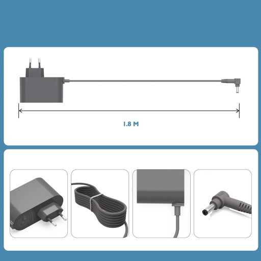 - Wejście: 100–240 V, 50–60 Hz. Wyjście: 30,45 V, 1,1 A, długość kabla: 1,8 m