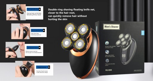 1. Golarka elektryczna dla mężczyzn: Golarka elektryczna dla mężczyzn 5 w 1 zwiększa obszar golenia, zapewniając szybkie i wydajne golenie.