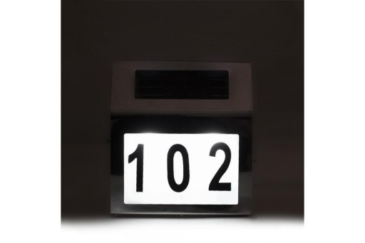 Dioda LED zapewnia wielogodzinne działanie i dobrą widoczność numeru budynku w ciemności.