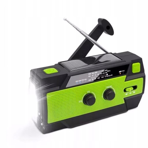 - Wbudowany akumulator 4000mAh do awaryjnego ładowania telefonu, przenośnego radia AM/FM