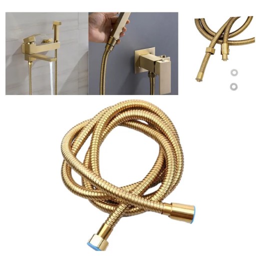 ✅ WĄŻ PRYSZNICOWY BEZSKRĘTNY ZŁOTY STAL 150-170CM