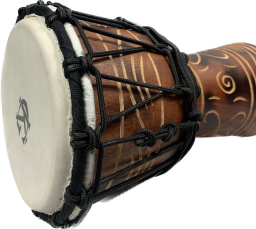 Djembe z serii Entry Level jest wykończone farbą na korpusie djembe i dolnej stronie bębna. Wygląda świetnie i przyciąga wzrok dla kręgów perkusyjnych i początkującego gracza. Wykonane jest z drewna mahoniowego.