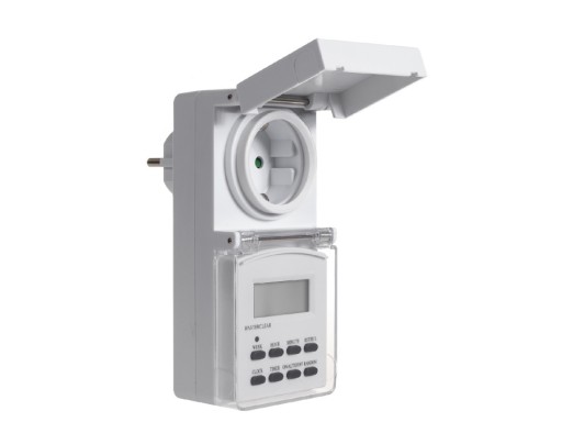 Cyfrowy wyłącznik czasowy, dzięki któremu ustawimy czas włączania i wyłączania się urządzeń elektrycznych. Może sterować np. pracą elektrycznego wyposażenia akwarium bądź terrarium, pracą ogrzewaczy wody, oświetlenia oraz wielu innych urządzeń. Timer posiada 10 programów wł/wył, można go dowolnie zaprogramować np. na dany dzień lub cały tydzień. Możliwość pracy zarówno w cyklu 24h jak i tygodniowym. Timer jest przeznaczony do użytku zarówno wewnętrznego jak i zewnętrznego.