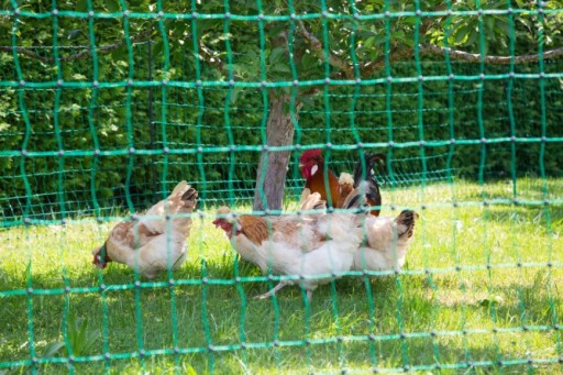 Siatka do hodowli drobiu bez możliwości podłączenia prądu jest bardzo popularna wśród osób hodujących drób na własne potrzeby. Zielona siatka z czarnymi słupkami z tworzywa sztucznego nie rzuca się tak bardzo w oczy jak popularne siatki pomarańczowe.