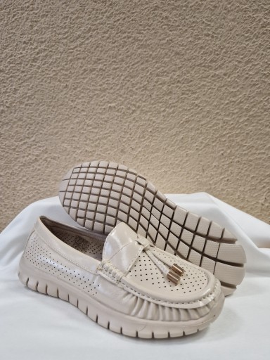 MOKASYN G2G wykonany z najwyższej jakości skóry ekologicznej oraz wkładka ze skóry naturalnej. To doskonała propozycja dla Pań ceniących komfort i wygodę użytkowania połączoną z nieprzeciętnym wyglądem. Obuwie bardzo lekkie, ażurowe dzięki czemu noga będzie oddychać. Całość obuwia wykonana z dbałością o każdy szczegół z najwyższej jakości materiałów.