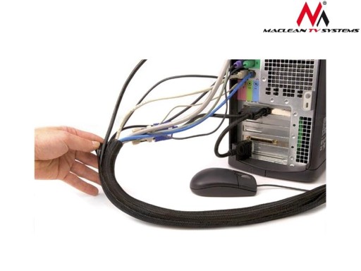 Elastyczna osłona na kable, łatwa w użyciu, chroni sprzęt i kable, idealna do porządkowania przewodów. Osłona wykonana jest z elastyczniego materiału, dzięki plecionej strukturze można ją rozciągać. na bokach ma rzepy, dzięki czmu nie trzeba przeciągać kabli przez całą długość, wystarczy włożyć kable do środka i skleić rzepy.