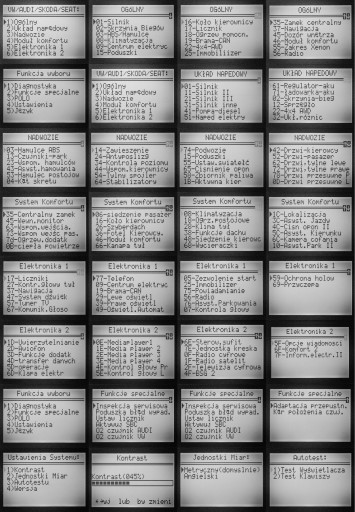 - Diagnostyka / Odczyt i kasowanie błędów / Parametry rzeczywiste / Kodowania / Adaptacje / Kalibracje / Testy wykonawcze samochodów grupy VAG z lat 1992-2013/2014 (VW, AUDI, SKODA i SEAT).