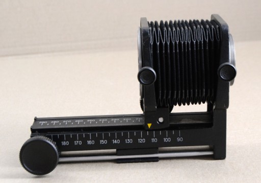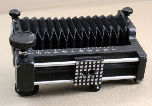 Solidny radziecki mieszek do MAKRO z montażem do gwintów M42. Stan bardzo dobry, NOWY. Sprawny 100%. Posiada podwójny wyciąg o długości max. 290mm oraz sanki nastawcze i mocowanie statywowe. W komplecie instrukcja obsługi oraz tzw. paszport - będący gwarancją legalności pochodzenia sprzętu.