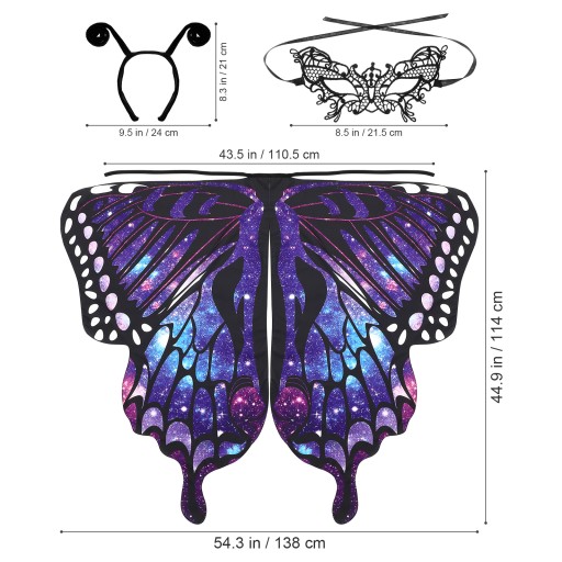 Zestaw peleryny w kształcie motyla na Halloween to obowiązkowy element Twojej kolekcji kostiumów. W zestawie maska i opaska na głowę, dzięki którym kostium motyla będzie jeszcze bardziej realistyczny. Ten kostium nadaje się na różne okazje, takie jak imprezy, Halloween, występy sceniczne.