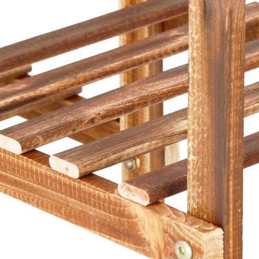 Duży rozmiar tego drewnianego stojaka pozwala na eksponowanie różnorodnych roślin w jednym miejscu, tworząc wspaniałe aranżacje kwiatowe. Niech Twój ogród stanie się miejscem, gdzie natura i design spotykają się, dzięki temu imponującemu trzy-poziomowemu regałowi na kwiaty.