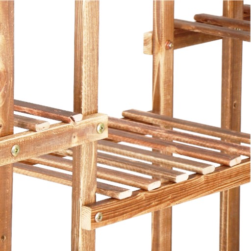 Zanurz się w świecie przyrody i podkreśl piękno swojego ogrodu dzięki temu imponującemu, dużemu stojącemu kwietnikowi. Wykonany z solidnego drewna, ten pięcio-poziomowy regał na kwiaty nie tylko dodaje uroku przestrzeni zielonej, ale także stanowi praktyczne i estetyczne rozwiązanie do wyeksponowania Twoich ulubionych roślin.