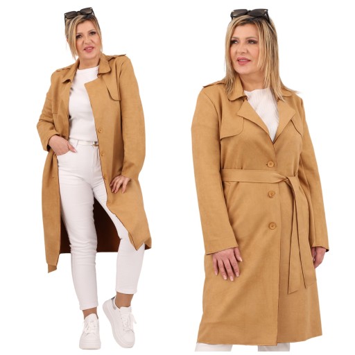 Nasz lekki płaszcz damski to połączenie subtelności, wygody i stylu, idealne na każdą okazję. Zapinany na trzy guziki prezentuje się niezwykle elegancko, podkreślając jednocześnie indywidualny gust i wyrafinowany smak. Lekki płaszcz damski to doskonały wybór dla kobiet ceniących subtelność i komfort. Ten płaszczyk nie tylko podkreśla indywidualny styl, ale również zapewnia funkcjonalność na co dzień. Płaszcz ten, wzbogacony o wyjątkowy design, prezentuje się jak zamsz, dodając luksusowego charakteru każdej stylizacji.