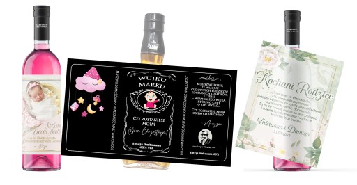 Personalizowana etykieta na wino pozwoli ozdobić butelkę w oryginalny sposób. Jest to bardzo modny dodatek do prezentu ślubnego. Bardzo często Para Młoda prosi o wino zamiast kwiatów.