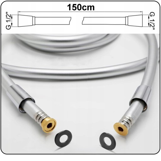 СИЛИКОНОВЫЙ ШЛАНГ ДЛЯ ДУША СЕРЕБРИСТО-СЕРЫЙ ГЛАДКИЙ ПВХ 360° РЕЗИНА 150 СМ