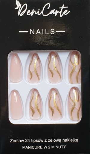 НАКЛАДКИ ДЛЯ ИСКУССТВЕННЫХ НОГТЕЙ ЗОЛОТЫЕ УЗОРЫ НЮДОВЫЙ ВИХРЬ 24 ШТ.