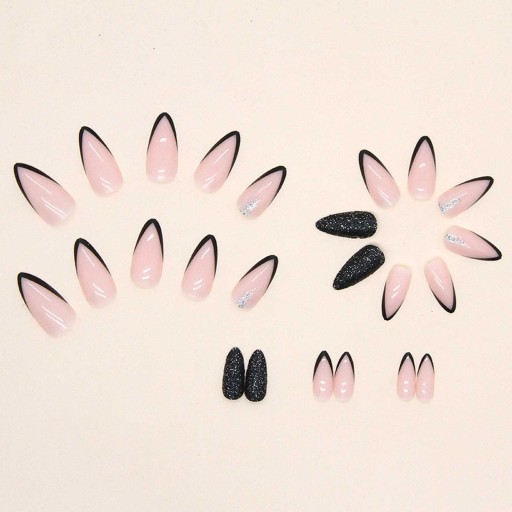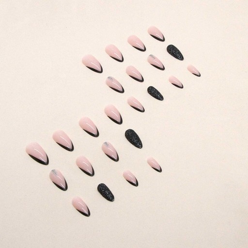 НАКЛАДКИ ДЛЯ ИСКУССТВЕННЫХ НОГТЕЙ УЗОРЫ ЧЕРНЫЕ ФРАНЦУЗСКИЕ БЛЕСКИ 24 ШТ.